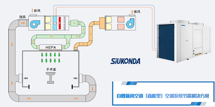 對(duì)于分散式或小型手術(shù)部,西屋康達(dá)推薦采用自取新風(fēng)空調(diào)(直膨型)空調(diào)系統(tǒng)節(jié)能解決方案