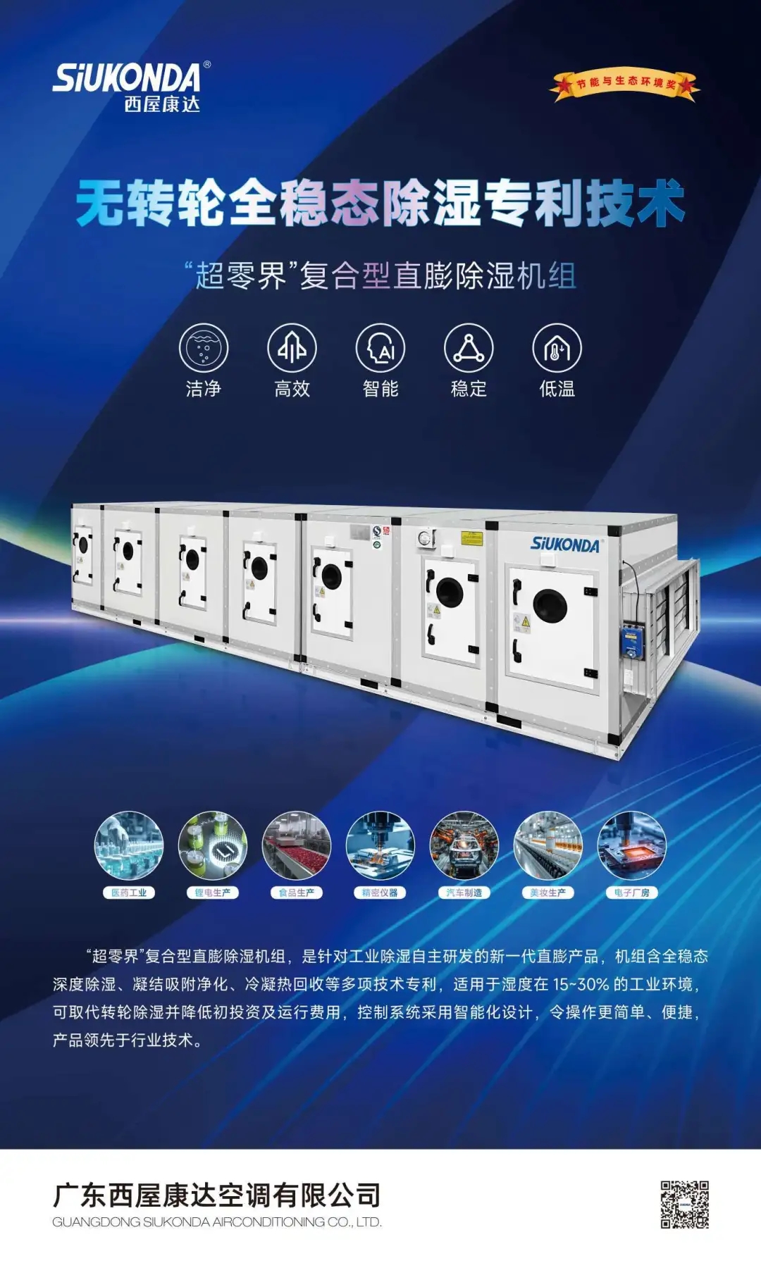 基于上一代所推出的“低露點變頻直膨無霜空調(diào)機(jī)組”,西屋康達(dá)實現(xiàn)了對行業(yè)直膨除濕水平的突破,而且能夠保持穩(wěn)定運行且不結(jié)霜,斬獲2022年度節(jié)能與生態(tài)環(huán)境產(chǎn)品獎榜單。伴隨上一代無霜除濕技術(shù)(適合相對濕度30%-45%)產(chǎn)品的應(yīng)用,所具有的產(chǎn)品力為行業(yè)帶來了令人驚嘆的節(jié)能效果,獲得了行業(yè)的認(rèn)可與使用上的支持,西屋康達(dá)新一代產(chǎn)品已實現(xiàn)突破,工業(yè)直膨除濕能力更進(jìn)一步!