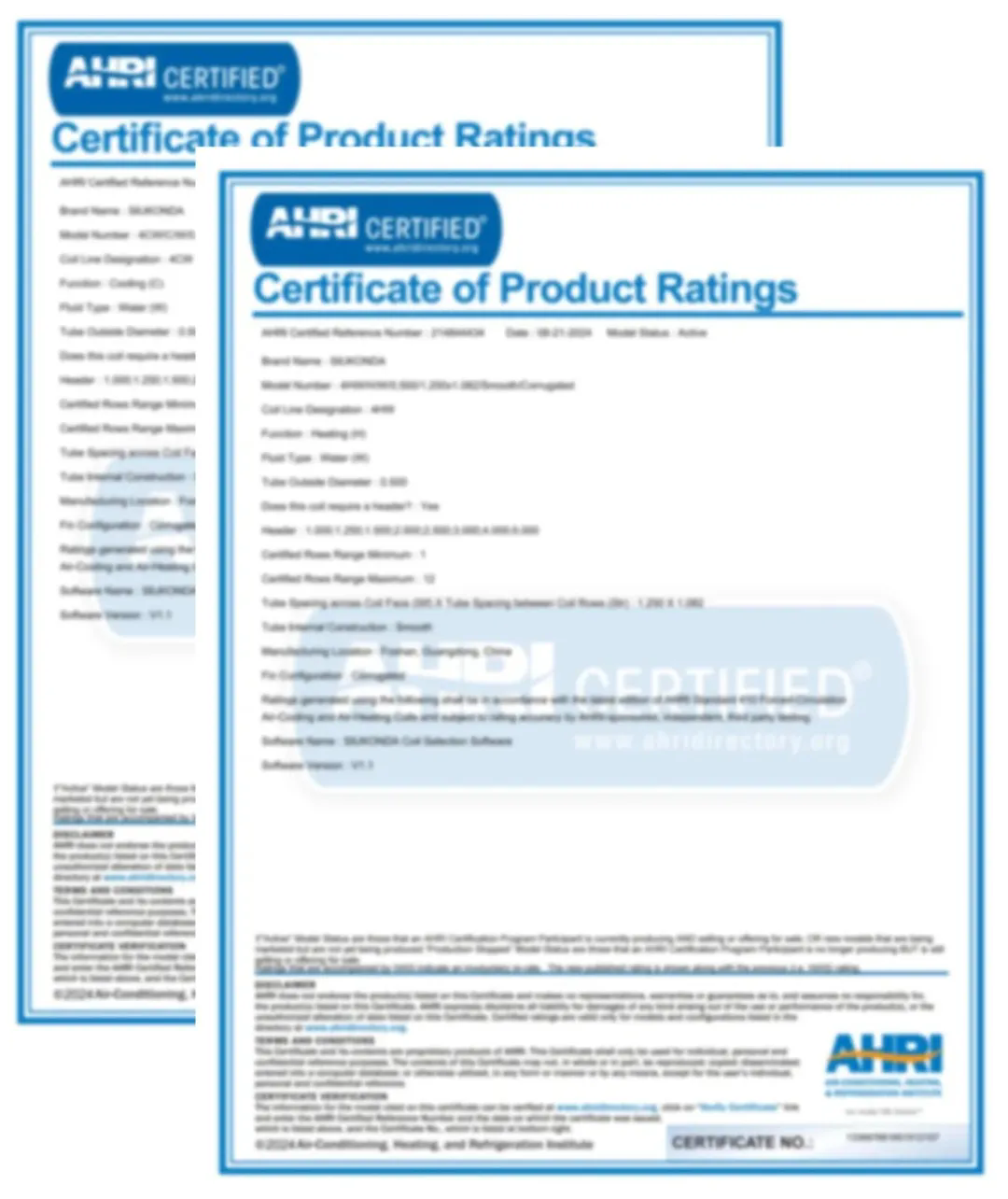 盤管通過AHRI國際權(quán)威認(rèn)證